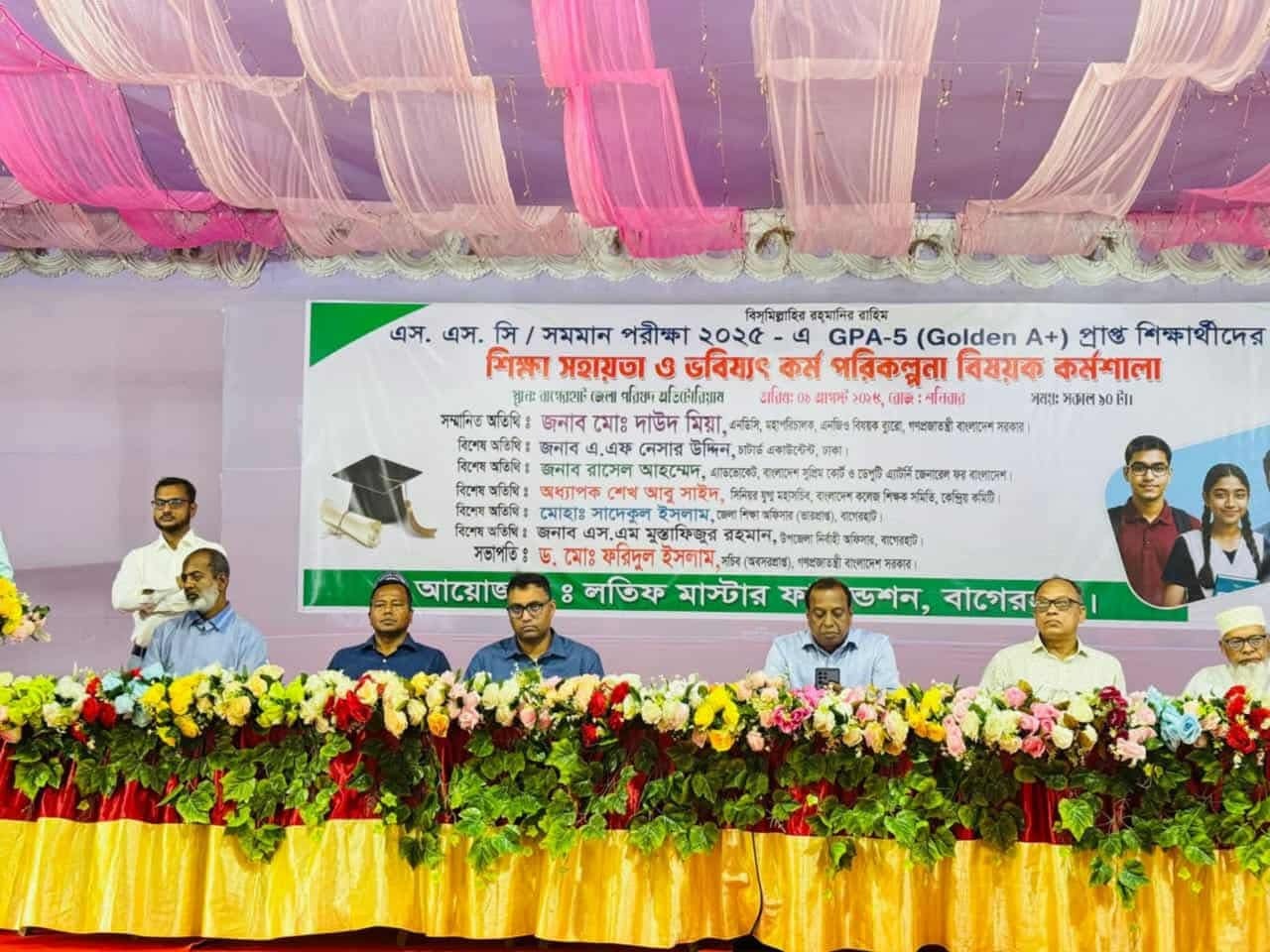 বাগেরহাটে এসএসসি ও সমমান পরীক্ষা ২০২৫-এ জিপিএ-৫ (গোল্ডেন এ+) অর্জনকারী শিক্ষার্থীদের শিক্ষা সহায়তা ও ভবিষ্যৎ কর্মপরিকল্পনা বিষয়ক কর্মশালা অনুষ্ঠিত হয়েছে।