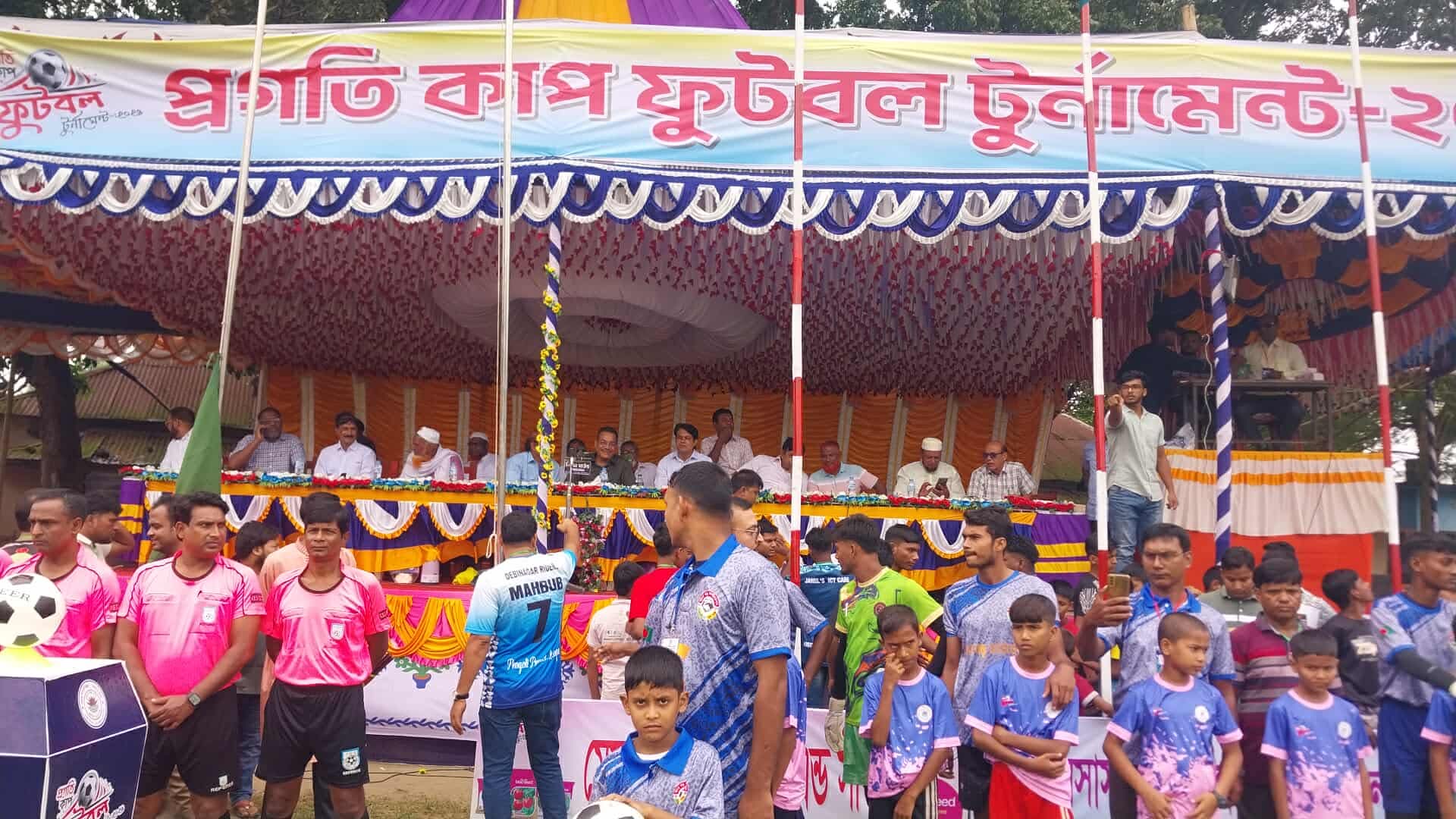 ১লা অক্টোবর সকাল ৯.৩০ মিঃ দেবীনগর প্রগতি কাপ ফুটবল টুর্নামেন্ট ২০২৫ইং এর শুভ উদ্বোধন করা হয়েছে। এ সময় উপস্থিত ছিলেন দেবীনগর প্রগতি সংঘের সভাপতি জনাব মামুনর রশিদ, প্রধান অতিথি ছিলেন চাঁপাইনবাবগঞ্জ বিএনপি’র গণমানুষের নেতা ও ৪ বারের সাবেক সংসদ সদস্য জনাব হারুনুর রশিদ হারুন, ছিলেন বিএনপির নেতা ও সাবেক সদর উপজেলা পরিষদের ভাইস চেয়ারম্যান জনাব নজরুল ইসলাম, বিএনপি নেতা পৌরসভার সাবেক কাউন্সিলর জনাব বারেক আলী, উপস্থিত ছিলেন সাবেক ছাত্রদলের সভাপতি জনাব সারওয়ার জাহান, ছিলেন দেবীনগর ইউনিয়ন পরিষদের সাবেক চেয়ারম্যান আ ক ম সাহেদুল আলম বিশ্বাস পলাশ, উপস্থিত ছিলেন দেবীনগর ইউনিয়ন বিএনপি’র সভাপতি জনাব সাদিকুল ইসলাম, ছিলেন দেবীনগর দ্বিমুখে মাধ্যমিক বিদ্যালয় এর প্রধান শিক্ষক জনাব আব্দুল আজিজ, উপস্থিত ছিলেন প্রগতি সংঘের সাধারণ সম্পাদক সহ সকল সদস্যবৃন্দ দেবীনগর ফুটবল প্রেমী সাধারণ জনগণ, উপস্থিত ছিলেন ইলেকট্রনিক্স ও প্রিন্ট মিডিয়ার সাংবাদিকগণ সহ দূর দূরান্ত হতে আগত টিম ম্যানেজমেন্ট দর্শনার্থীরা।
