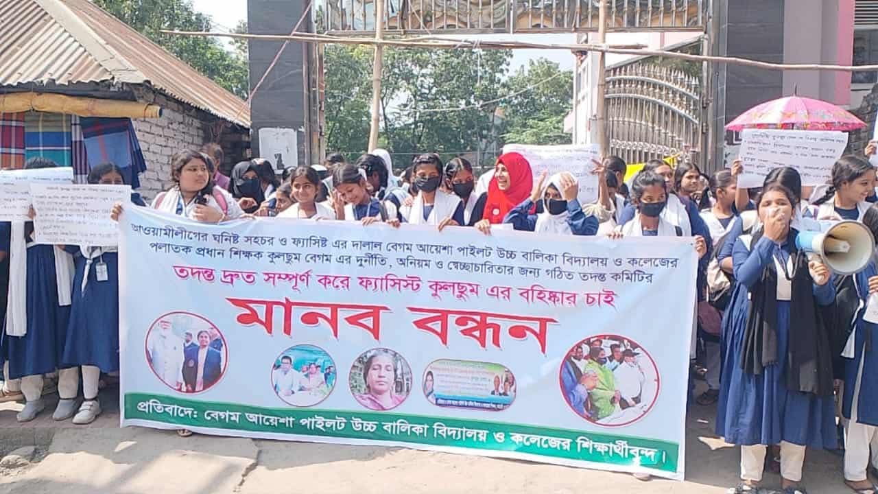 ঢাকার দোহার উপজেলার ঐতিহ্যবাহী শিক্ষাপ্রতিষ্ঠান বেগম আয়শা উচ্চ বিদ্যালয় ও কলেজের সাবেক প্রধান শিক্ষক কুলসুম বেগমের বিরুদ্ধে দুর্নীতি, অনিয়ম ও ক্ষমতার অপব্যবহারের অভিযোগ এনে তাঁর স্থায়ী অপসারণের দাবিতে শিক্ষার্থীরা মানববন্ধন ও বিক্ষোভ করেছেন। এছাড়াও, তার নিয়োগের সময় তার কাম্য যোগ্যতা না থাকা সত্বেও, তাকে অবৈধভাবে নিয়োগ দেয়ায় সে নিয়োগ বাতিল করে অবৈধভাবে রাষ্ট্রীয় সুযোগ গ্রহণ করায়, সেগুলো ফেরত নিতে সরকারের প্রতি আবেদন জানানো হয়।
