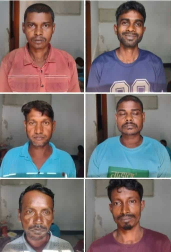 গ্রেফতারকৃত ৬ জন হলেন, স্বরুপপুর গ্রামের মৃত লগেন পাহানের দুই ছেলে পরিমল পাহান (৩২) ও প্রদ্যুৎ কুমার পাহান (২৮) একই গ্রামের সুরেন পাহানের ছেলে রানা পাহান (২৪), মৃত মন্টু পাহানের ছেলে মিলন পাহান (৩৫), জানু পাহানের ছেলে নিমাই পাহান (৩০) ও বিশা পাহানের ছেলে রবি পাহান (৪০)।