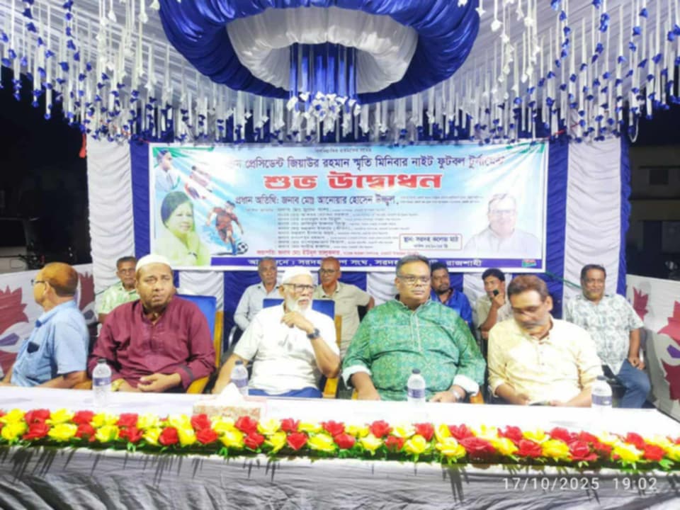 রাজশাহীর চারঘাট উপজেলার সরদহ সরকারি মহাবিদ্যালয় কলেজ মাঠে সারদা তরুণ সংঘের উদ্যোগে শুক্রবার (১৭ অক্টোবর) রাতে শহীদ প্রেসিডেন্ট জিয়াউর রহমান স্মৃতি মিনিবার নাইট ফুটবল টুর্নামেন্টের বর্ণাঢ্য উদ্বোধন অনুষ্ঠিত হয়।