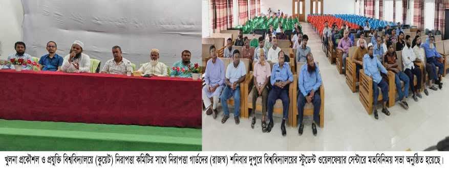খুলনা প্রকৌশল ও প্রযুক্তি বিশ্ববিদ্যালয়ে (কুয়েট) নবগঠিত নিরাপত্তা কমিটির সাথে নিরাপত্তা গার্ডদের (রাজস্ব) মতবিনিময় সভা অনুষ্ঠিত হয়েছে।