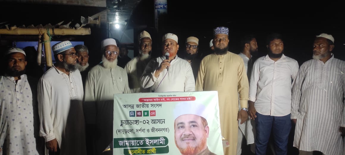 ত্রয়োদশ জাতীয় সংসদ নির্বাচনে বাংলাদেশ জামায়াতে ইসলামী মনোনিত চূয়াডাঙ্গা-২ আসনের এমপি নমিনী জেলা আমীর এ্যাডভোকেট রুহুল আমিন জীবননগর বলেছেন, জামায়াতে ইসলামী রাষ্ট্র পরিচালনার সুযোগ পেলে মানবতার কল্যাণে কাজ করতে চাই। মানুষেরপাশে থাকতে চাই। জামায়াতে ইসলামী নেতারা দলকানা জনপ্রতিনিধি হতে চাইনা । আমরা জনপ্রতিনিধিদের কে জনগেণের নিকট জবাবদিহিতার কালচার প্রতিষ্ঠা করতে চাই। জামায়াতে ইসলামী করতে কলিজা লাগে। মুরগীর কলিজা নিয়ে জামায়াতে ইসলামী করা যায়না। আওয়ামী ফ্যাসিবাদের হাজারো আঘাতেও জামায়াতে ইসলামীর কর্মিরা রাজপথে দাড়িয়ে আছে। জামায়াতের শীর্ষ নেতাদের ফাসিঁ, দিয়েও থামানো যায়নি এ দলের জানবাজ কর্মীদের। জুলুম, নিযাতন সহ্য করেই জামায়াত আজ এই অবস্থানে এসেছে। গতকাল হাসাদাহ ইউনিয়ন জামায়াতের উদ্যোগে আয়েজিত এক পথসভায় একথা বলেন। তিনি আরো বলেন, দাড়িপাল্লায় ভোট দিলে জিতে যাবে জনগন। জামায়াতে ইসলামী দেশের শ্রমিক সমাজসহ সাধারণ প্রান্তিক জনগোষ্ঠি চাওয়া পাওয়া কে মাথায় নিয়ে দেশ পরিচালনা কররে। দাড়িপাল্লা সাধারণ মানুষের প্রিয় প্রতিক । তিনি বলেন, যারা শ্রমিকদের বন্ধু হবেনা তাদেরকে প্রত্যাখ্যান করুন। আমরা শ্রমিকেদের উত্তম বন্ধু হতে চাই। জামায়াতে ইসলামী সরকার গঠন করলে এ দেশে শ্রমিকদের কাজের পরিবেশ উন্নত করা হবে। শমিকদের ন্যায্য ন্যুন্যতম মুজুরি ধায করে দেয়া হবে। আমরা রাষ্ট্র পরিচালনার সুযোগ পেলে উন্নতি দূর্নীতি একসাথে চলবে না্। সব রকম দূর্নীতিকে জাদুঘরে পাঠানো হবে। টাকা ছাড়াই আপনার সন্তানকে চাকুরির ব্যবস্থাকরতে চাই। জামায়াত মানুষের হক তার দোর গোড়ায় পৌছে দিতে চাই। আমরা শাসক নই বরং জনগণের সেবক হতে চাই। জীবননগর হাসপাতালকে আধুনিকায়ন করে স্বাস্থ্য সেবার মান আরো উন্নত করা হবে। তিনি আরো বলেন, বৈচিত্রময় কৃষি প্রধান জীবননগর এলাকায় একটি কৃষি বিশ্ববিদ্যালয় প্রতিষ্ঠার উদ্যোগ নেয়া হবে। হাসাদাহ ইউনিয়ন জামায়াতের আমীর আখতারুজ্জামানের সভাপতিত্বে পথসভায় আরো উপস্থিত ছিলেন, চুয়াডাঙ্গা জেলা নায়েবে আমীর মাওলানা আজিজুর রহমান, জেলা ছাত্রশিবিরের সভাপতি সাগর আহম্মেদ, সেক্রেটারি এ্যাডভোকেট আদুজ্জামান, জেলা তালিমুল কুরআন বিভাগের সভাপতি মাওলানা মহিউদ্দীন, জেলা প্রশিক্ষণ সম্পাদক জিয়াউল হক, জেলা উলামা বিভাগের সভাপতি মাওলানা’ ইসরাইল হোসেন, জেলা মাজিলিসুল মুফাসসিরিন পরিষদের সভাপতি মাওলানা হাফিজুর রহমান, জীবননগর উপজলো আমীর মাওলানা সাজেদুর রহমান, জেলা শ্রমিক কল্যাণ ফাউন্ডেশনের সেক্রেটারি এমদাদুল্লাহ মহসিন, নায়েবে আমীর হাফেজ বিল্লাল হোসেন,, সহকারী সেক্রেটারী সাইদুল হক, বায়তুলমাল সম্পাদক আশাবুল হক মল্লিক, উপ