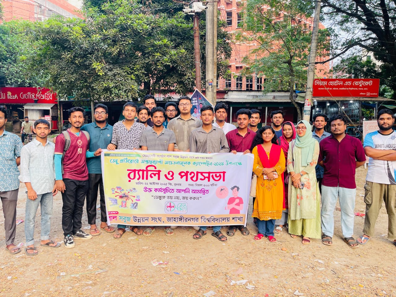 ডেঙ্গু প্রতিরোধে সচেতনতা বাড়াতে জাহাঙ্গীরনগর বিশ্ববিদ্যালয়ে লাল সবুজ উন্নয়ন সংঘ, জাবি শাখার উদ্যোগে সপ্তাহব্যাপী সচেতনতামূলক ক্যাম্পেইন শুরু হয়েছে। আজ দুপুরে ক্যাম্পাসে এক র‍্যালি ও পথসভার মধ্য দিয়ে এই কর্মসূচির আনুষ্ঠানিক উদ্বোধন করা হয়।