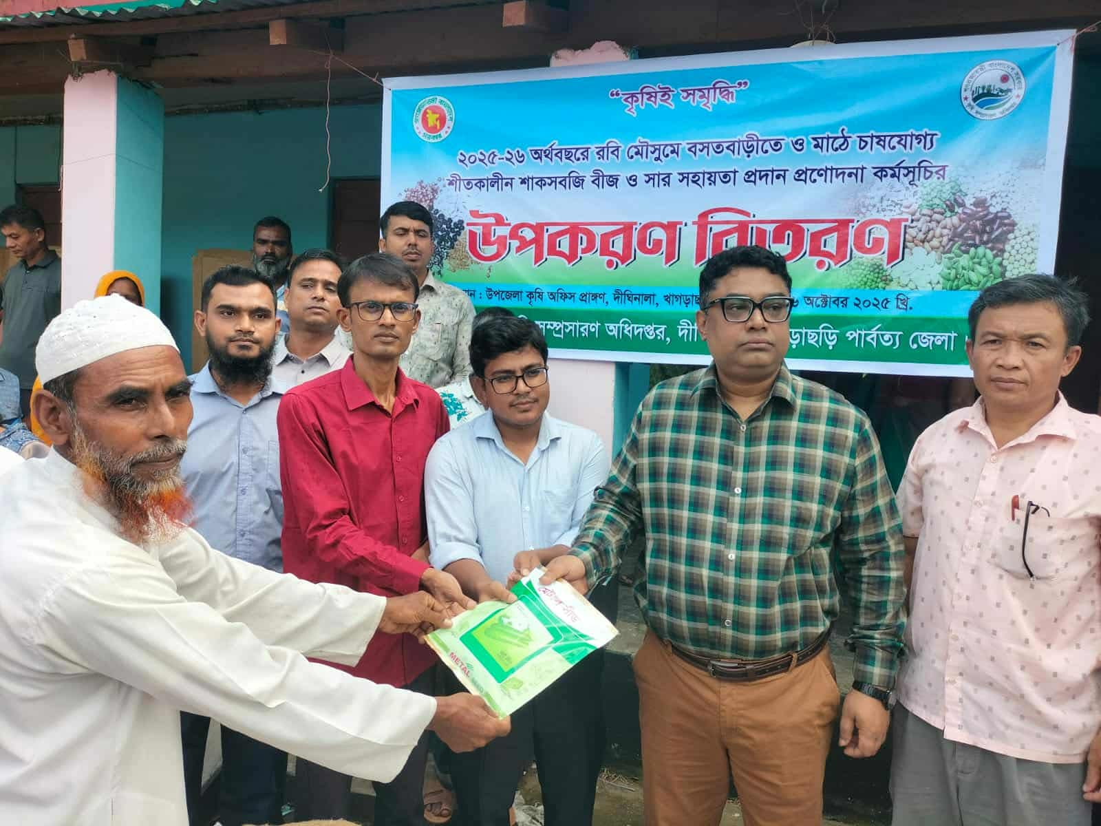“কৃষিই সমৃদ্ধি”—এই স্লোগানকে সামনে রেখে খাগড়াছড়ির দীঘিনালা উপজেলায় অনুষ্ঠিত হয়েছে শীতকালীন শাকসবজির বীজ ও সার সহায়তা বিতরণ অনুষ্ঠান।