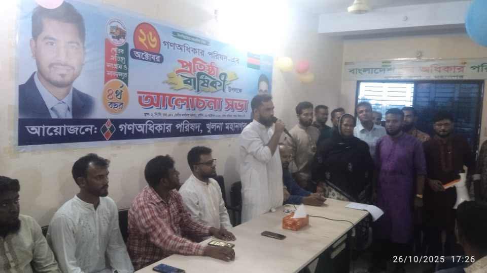 গণঅধিকার পরিষদ খুলনা জেলা ও মহানগর শাখা কর্তৃক ৪র্থ প্রতিষ্ঠা বার্ষিকী পালিত।