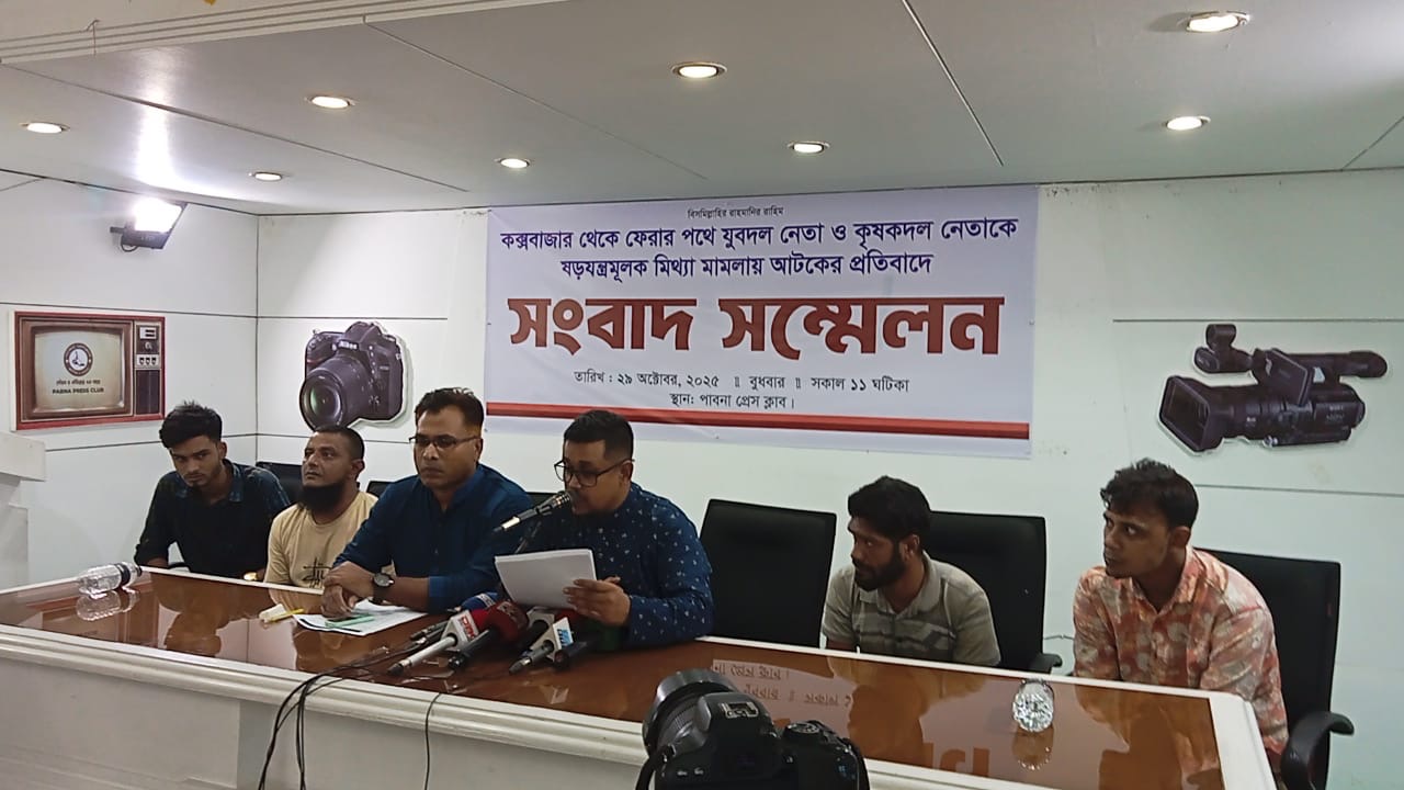 কক্সবাজার থেকে ফেরার পথে পাবনা জেলা যুবদল ও কৃষকদল নেতাদের ষড়যন্ত্রমূলকভাবে মিথ্যা মামলায় আটক করার প্রতিবাদে সংবাদ সম্মেলন অনুষ্ঠিত হয়েছে।