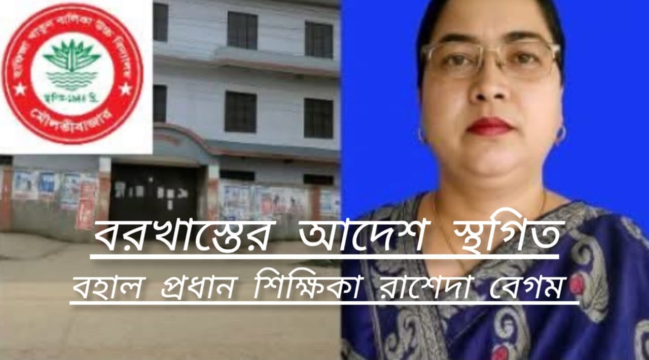 মৌলভীবাজারের হাফিজা খাতুন বালিকা উচ্চ বিদ্যালয়ের প্রধান শিক্ষিকা রাশেদা বেগমের বিরুদ্ধে শিক্ষা অধিদপ্তরের বরখাস্তাদেশ ছয় (৩) মাসের জন্য স্থগিত করেছেন বাংলাদেশ সুপ্রিম কোর্টের হাইকোর্ট বিভাগ।