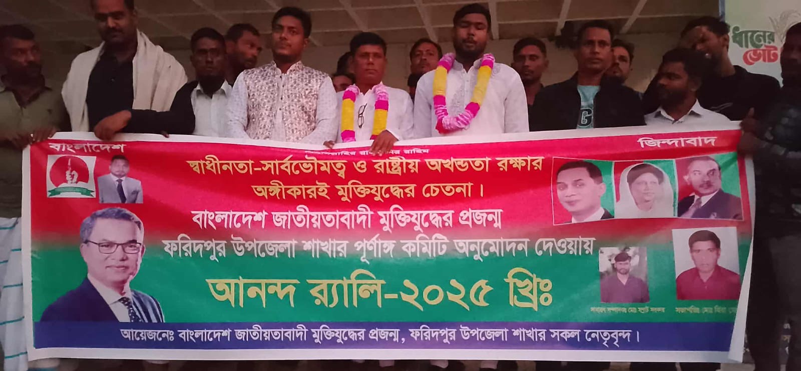 পাবনার ফরিদপুর উপজেলা বাংলাদেশ জাতীয়তাবাদী মুক্তিযুদ্ধের প্রজন্ম দলের পূর্নাঙ্গ কমিটি অনুমোদন দেওয়ায় জেলা কমিটিকে ধন্যবাদ জানাতে আনন্দ র্যালি অনুষ্ঠিত হয়েছে।