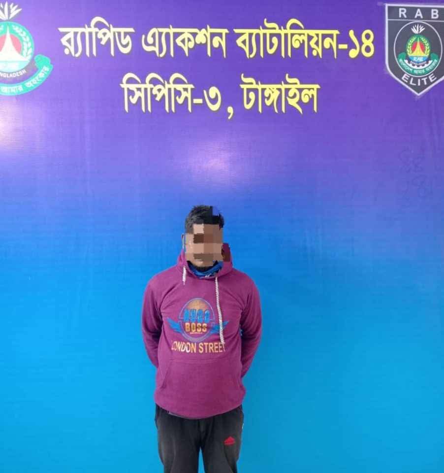 এরই ধারাবাহিকতায় অদ্য ১৭ নভেম্বর ২০২৫ খ্রীস্টাব্দ, দুপুর ১৫:০০ ঘটিকায় র্যাব-৬, সিপিসি-সদর কোম্পানি এবং র্যাব-১৪, সিপিসি-৩, টাঙ্গাইল এর যৌথ আভিযানিক দল গোপন সংবাদের ভিত্তিতে টাঙ্গাইল জেলার কালিহাতি থানাধীন বেলটিয়া এলাকায় বিশেষ অভিযান পরিচালনা করে বাগেরহাট জেলার শরণখোলা থানার চাঞ্চল্যকর মিলন হত্যা মামলার এজাহারভুক্ত প্রধান পলাতক আসামি