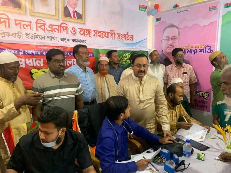 ময়মনসিংহ-১১ ভালুকা আসনে বিএনপি মনোনীত ধানের শীষ প্রতীকের প্রার্থী, বিএনপি জাতীয় নির্বাহী কমিটির সাবেক সদস্য ও উপজেলা বিএনপির সাবেক সভাপতি জননেতা ফখরউদ্দিন আহমেদ বাচ্চু এরউদ্যোগেউপজেলাব্যাপীর জন্য বিনামূল্যে চিকিৎসা সেবা প্রদান ও ঔষধ বিতরণ কর্মসূচির ৯ম দিনে আজ ১৮ নভেম্বর মঙ্গলবার উপজেলার মল্লিকবাড়ি ইউনিয়ন ও বিরুনিয়া ইউনিয়নে বিশেষজ্ঞ ডাক্তারগণ রোগী দেখেন এবং পরে রোগীদের মাঝে বিনামূল্যে ঔষধ বিতরণ করা হয়।