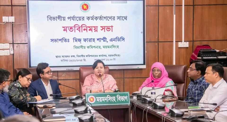 আজ ১৯ নভেম্বর বুধবার দুপুর ১২.০০টায় বিভাগীয় কমিশনার কার্যালয়ের সম্মেলন কক্ষে বিভাগীয় পর্যায়ের কর্মকর্তাদের সাথে মতবিনিময় সভায় এসব কথা বলেন ময়মনসিংহের সদ্য যোগদানকৃত বিভাগীয় কমিশনার ফারাহ শাম্মী, এনডিসি। আয়োজিত এ সভায় বিভাগীয় পর্যায়ের সকল দপ্তরপ্রধানগণ উপস্থিত ছিলেন।